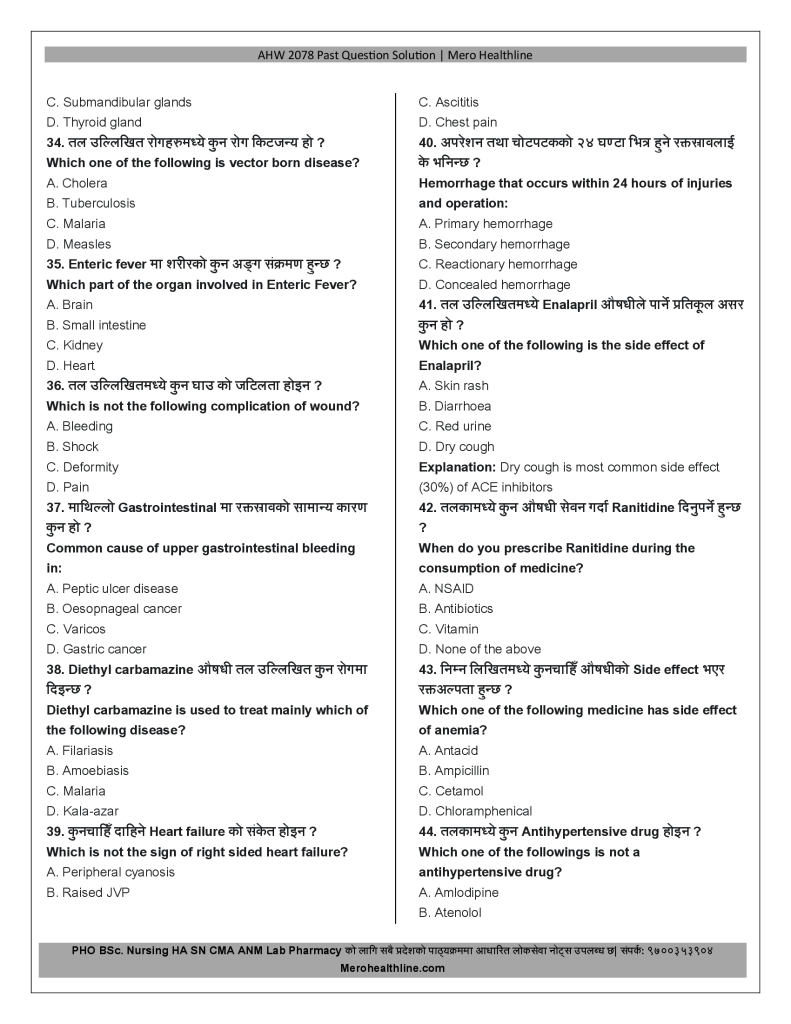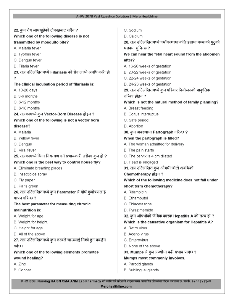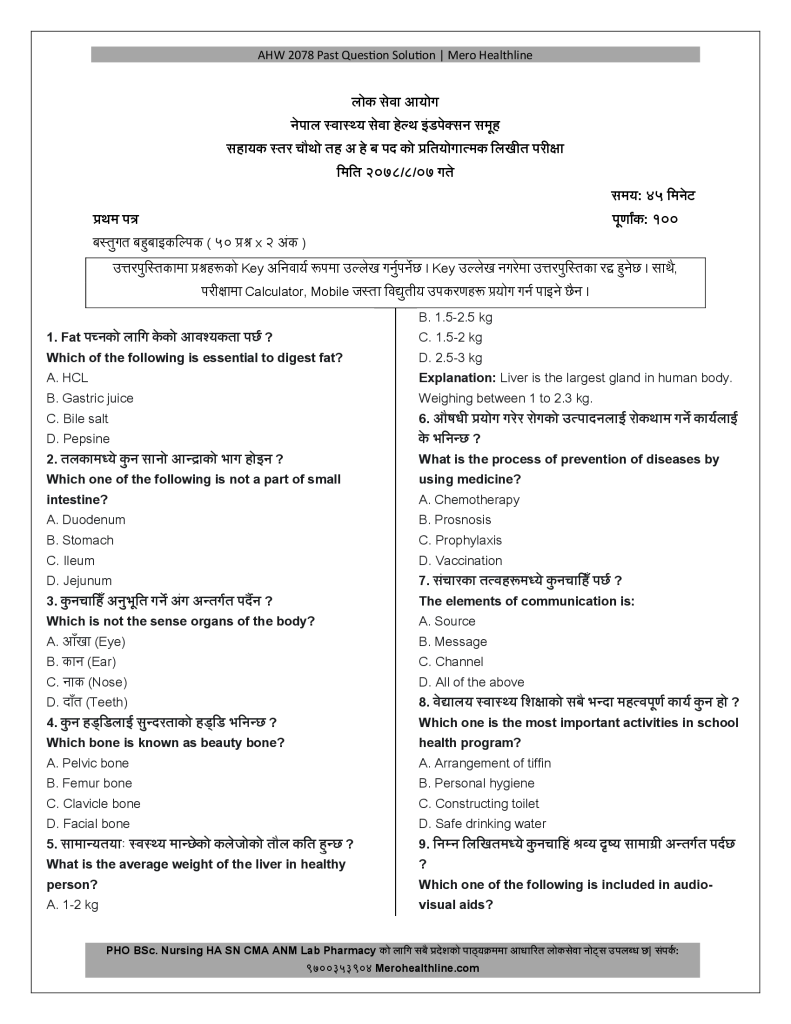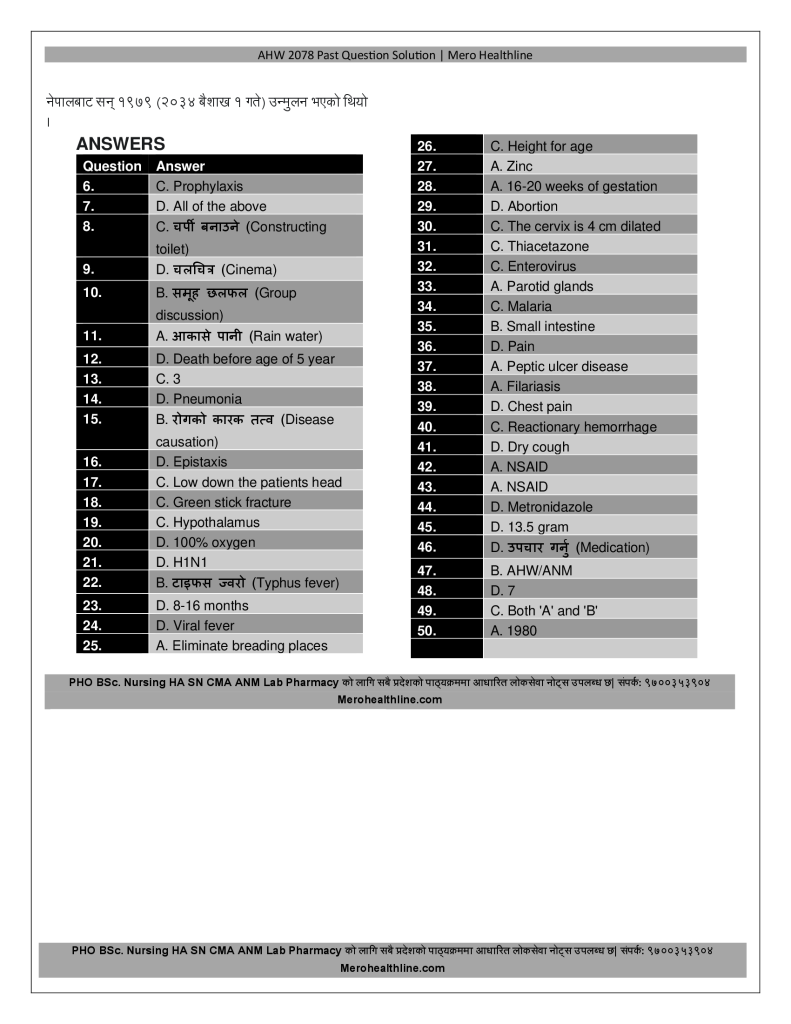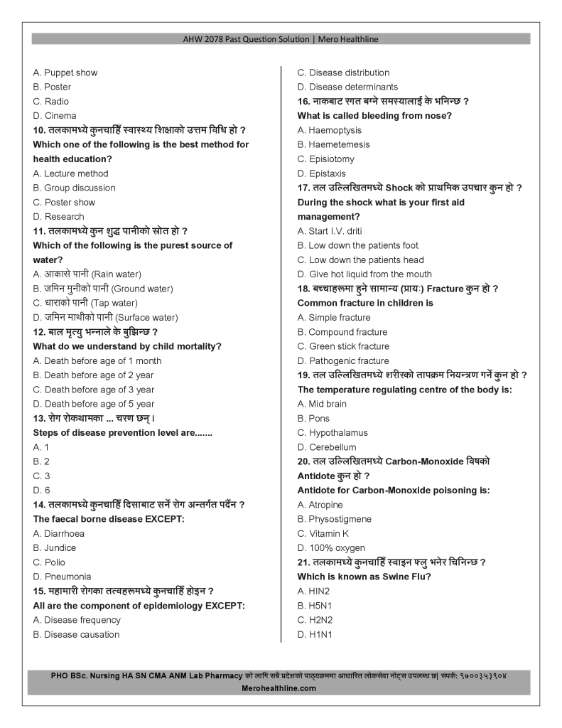 PHO BSc. Nursing HA SN CMA ANM Lab Pharmacy को लागि सबै प्रदेशको पाठ्यक्रममा आधारित लोकसेवा नोट्स उपलब्ध छ| संपर्क: ९७००३५३९०४ Merohealthline.com