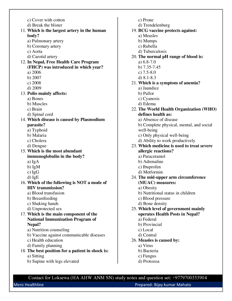 ANM Loksewa Model Set August 6, 2025August 6, 2025 Merohealthline 392 Download model set question for ANM koshi province