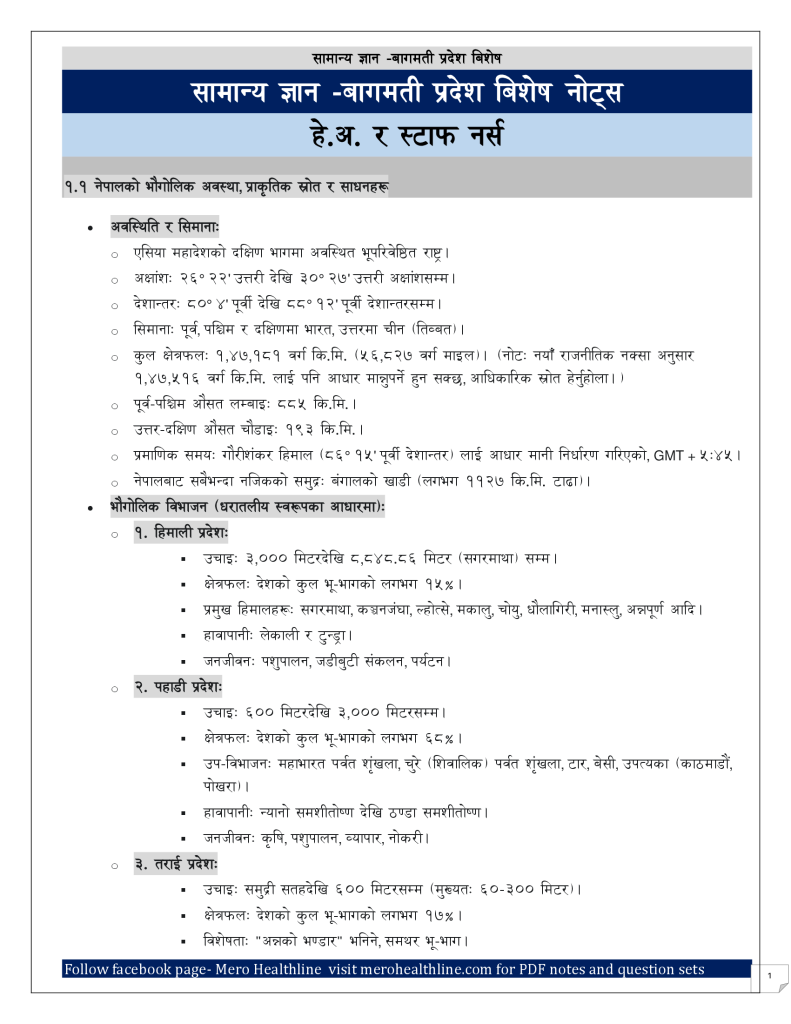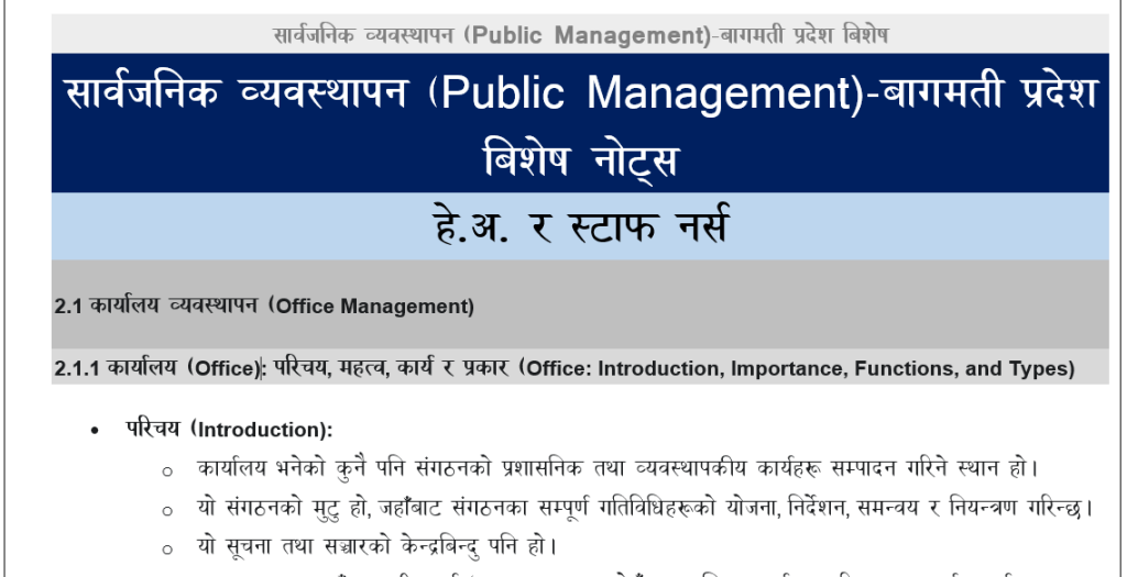We are sharing high-quality, exam-focused PDF notes on General Knowledge (GK) and Public Management – essential subjects for various technical and non-technical positions under Bagmati Province. These resources are especially useful for candidates appearing for Health Services, Administration, Engineering, and other Provincial Level exams.