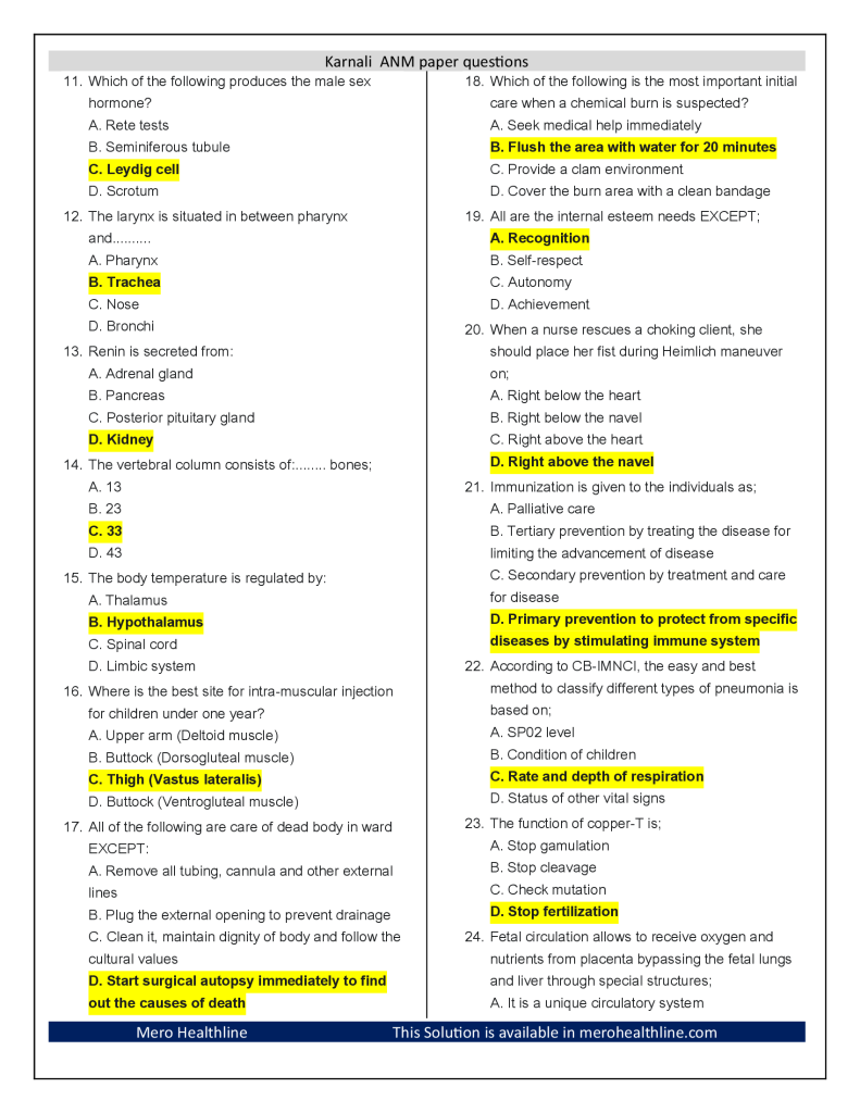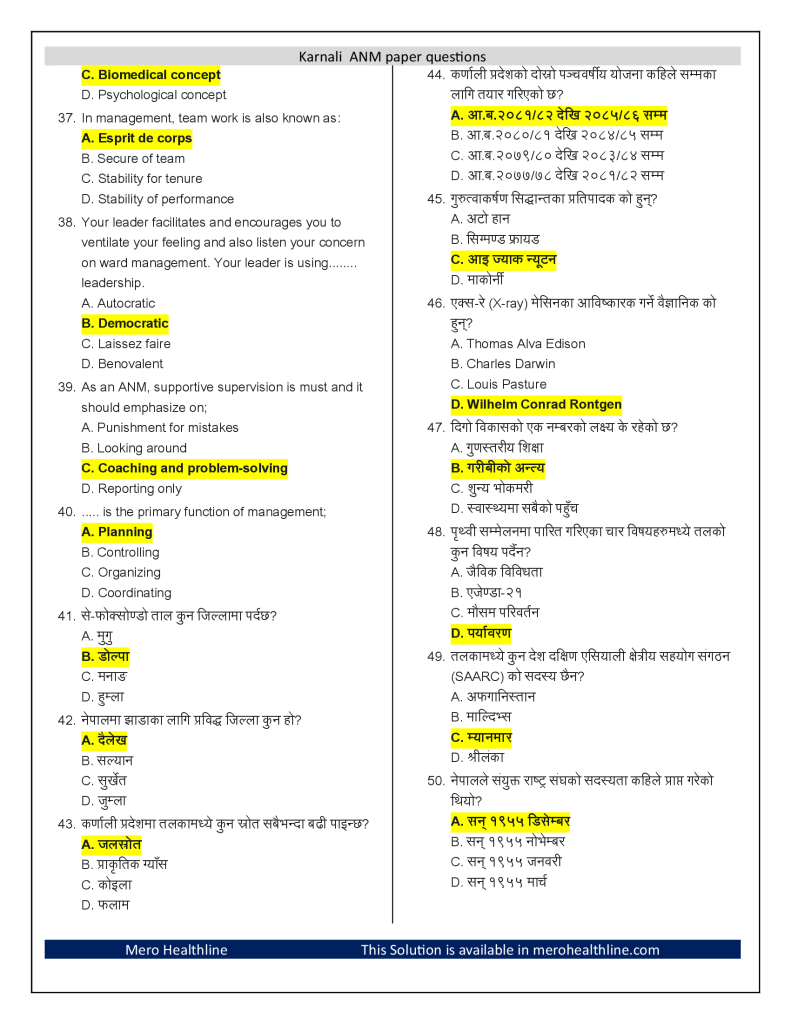 आज भएको कर्णाली प्रदेशको अ न मि को प्रथम पत्र को संभावित सही उत्तरहरु