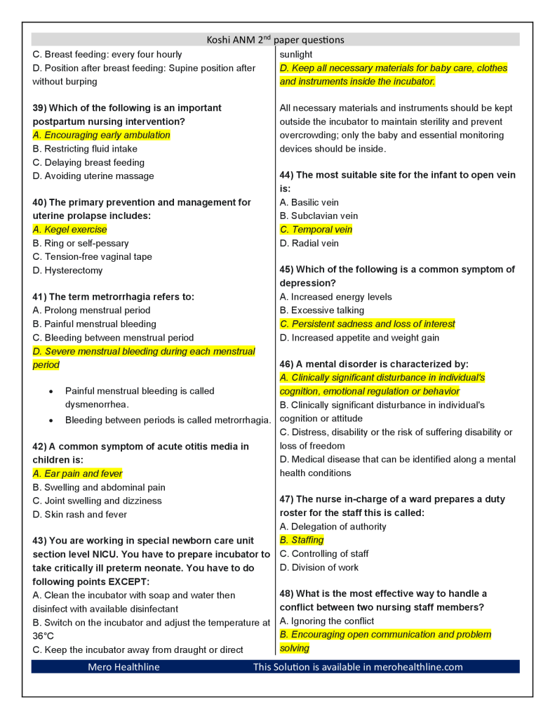 39) Which of the following is an important postpartum nursing intervention?