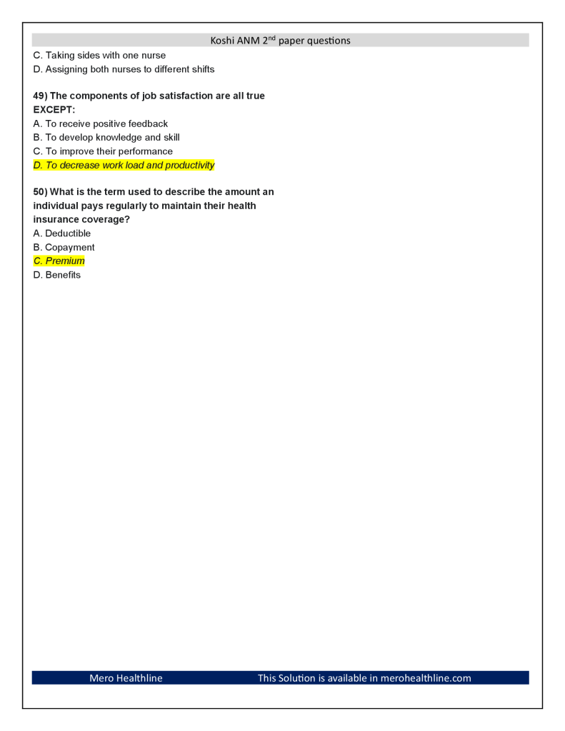 50) What is the term used to describe the amount an individual pays regularly to maintain their health insurance coverage?