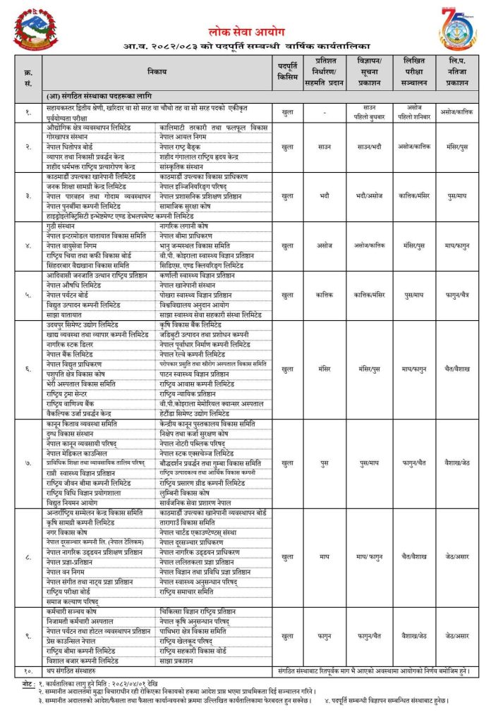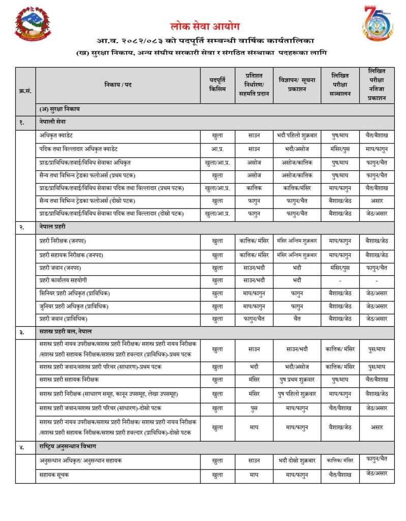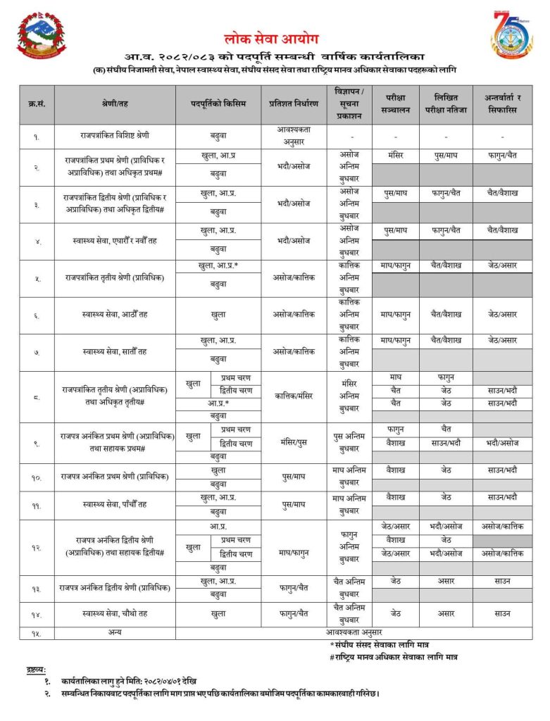 Federal Loksewa Ayog Schedule 2082/83 July 17, 2025July 17, 2025 Merohealthline 626 केन्द्रिय लोक सेवा आयोगको आ.व. २०८२/०८३ को पदपूर्ति सम्बन्धी वार्षिक कार्यतालिका PDF: