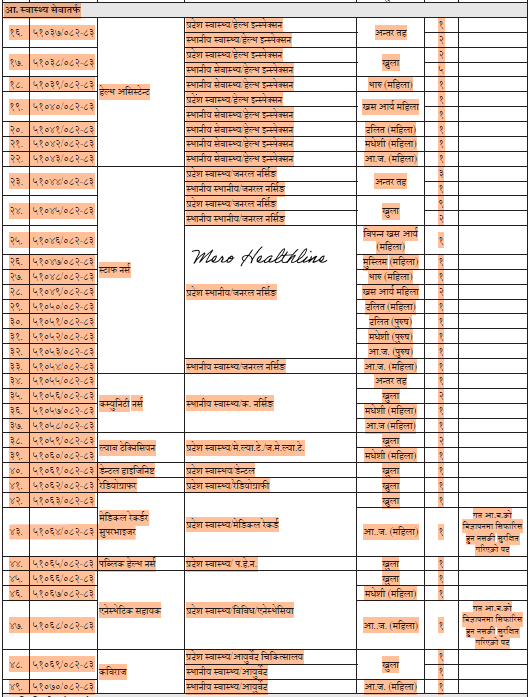 स्वास्थ्य सेवा तर्फ पदअनुसार रिक्त संख्या निम्नानुसार रहेको छः