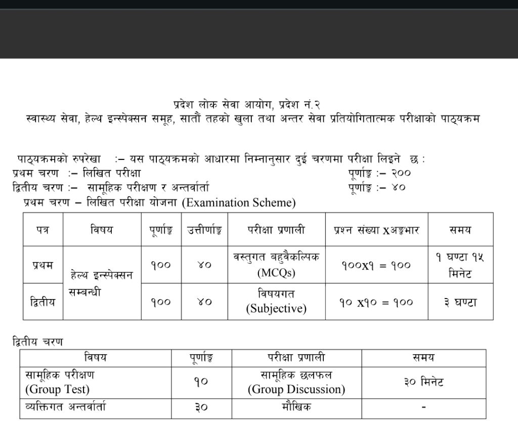 PHO Loksewa syllabus Madhesh province PDF download